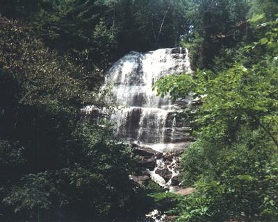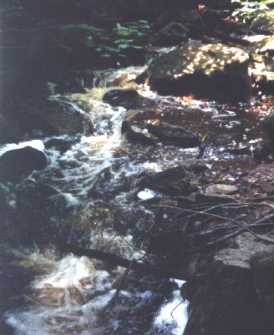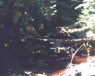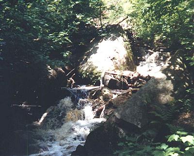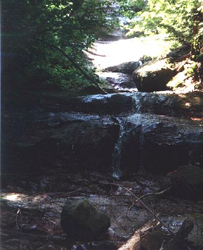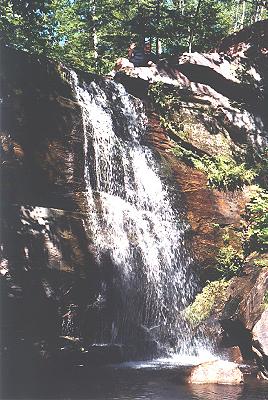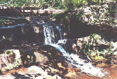 | Nature provided somewhat of a coda to our trip to the Hungarian Falls area. this cute little falls is just upstream from the last picture. It also provides a bit of excitement for the industrial archeaologist in me. The top of the falls is capped off with a hewn timber with a couple of spikes. It looks like remnants of a lumbering dam used for moving lumber downstream. |