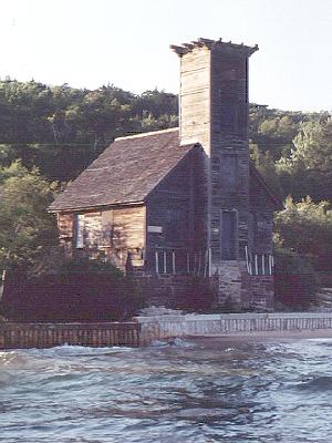This is possibly the oldest building standing on Grand Island. It's a log cabin probably built in the late 1800's. (it's been a year since the tour, I forget! :)) I do remember something about it being basically an open cabin for quite a while, that various people sort of squatted in at various times. As you can see, the National Park Service has done a great job restoring it. |