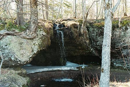 | A picture of Scott Falls taken in early May 2002. Note the SNOW still present behind the pool of water the falls empties into. This falls is right on the roadside of M-28 a few miles west of Christmas. There is a roadside park across the road which leads me to the next picture in our album... |