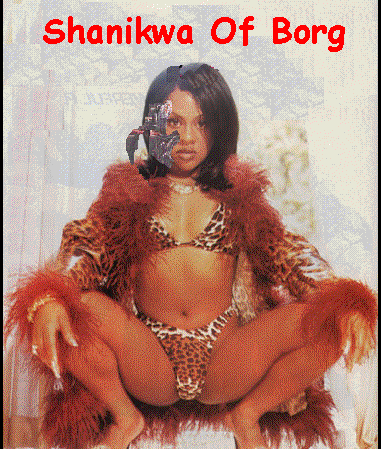 Shanikwa has been a Borg for over three years. She was allowed to retain her earth name and memories because the Borg felt that her identity as a strong black woman strengthened the collective. "They were very hyped to get inside my head. They wanted to see what I see and feel what I feel. Some of the humanoid Borgs even tried getting their hair braided. The Borg Queen made a quick trip back to Earth so that she could try out some weed. She don't want none of the other Borg to know, but she also went to New York before the fake-ass death and tried to get with Biggie. I was living large in the Collective. I tell you, a sister was definitely in there! It wouldn't have been too long before all the Borg was living Ghetto Fabulous."