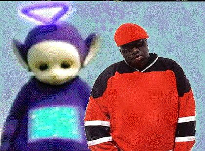 We later met up with the Notorious B.I.G. near a teletubby rap club called "Uh Oh". Apparently Biggie decided to forgo his protests for the moment about performing and decided to do a charity show for the tubbies, since as he puts it "They feeling a nigga, yo, they feeling me."
