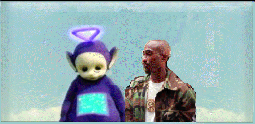 Tinky Winky the Teletubbie has been under fire from the Reverend Jerry Falwell. Apparently Rev. Falwell believes that the tv tubby is gay. We of the Children of the Thug Immortal have learned the truth: Falwell is actually an ALIEN who has a beef with Tinky Winky that started when the two of them met Tupac and Biggie on Yilamhar.