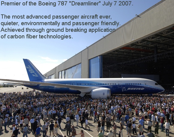 The 787 is the first commercial airplane to make the change from metal to composite structure. The majority of the 787's major structure is made out of composite material. The Dreamliner is the first commercial airplane to be built with a one-piece fuselage. Manufacturing a one-piece fuselage section eliminates 1,500 aluminum sheets and 40,000 to 50,000 fasteners.