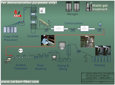 The conversion of PAN to carbon fibers is normally made in 4 continuous stages