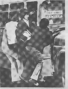 Fighting to use public transport was part of daily life.