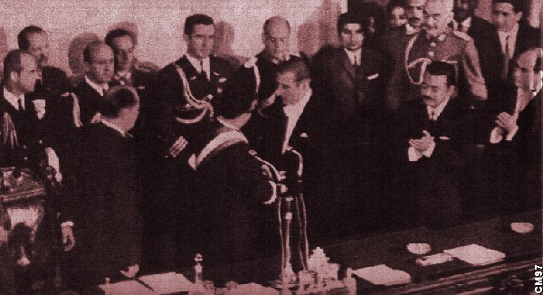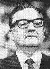 El día en que el Congreso Nacional de Chile eligió al Marxista Dr. Salvador Allende Gossens a la presidencia, en 1970. Aquí vemos al ex-presidente Eduardo Frei Montalva (Demócrata Cristiano) dándole la banda presidencial a Salvador Allende entre muchas promesas populares.