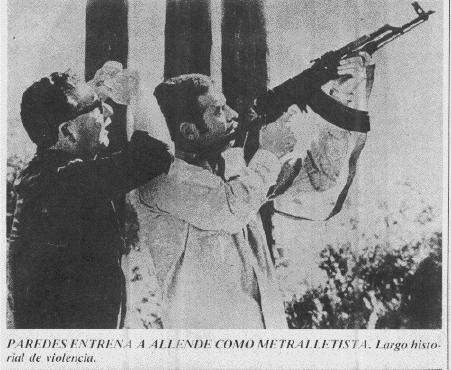 Allende y su vía "pacifica" al socialismo; Practicando tiros con el jefe de la Policía Política de Allende, "Coco" Paredes. (donado por Fundación A.P.U)