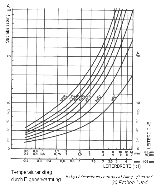 Temperatur - Erhöhung durch den Leiterbahnstrom