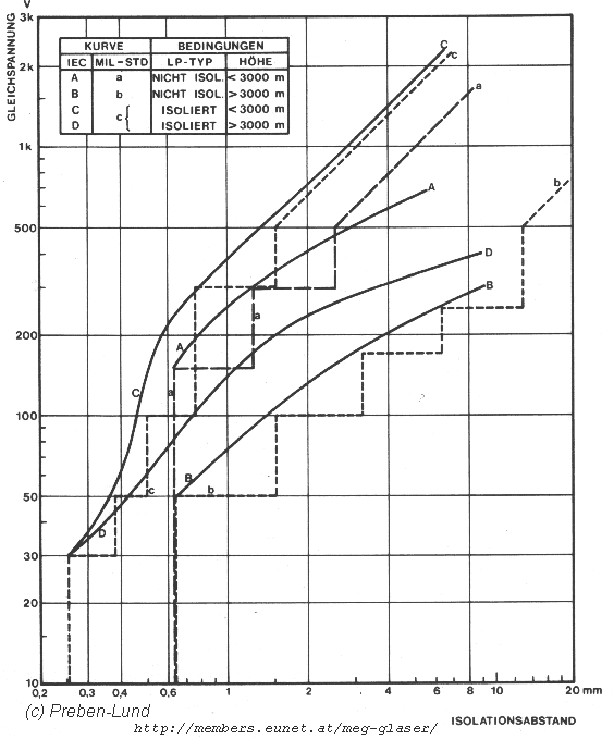Erlaubte Spannung zwischen den Leiterbahnen