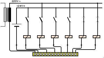 Relaiskontakten. Zur leichteren Darstellung wurde als Spannungsquelle eine