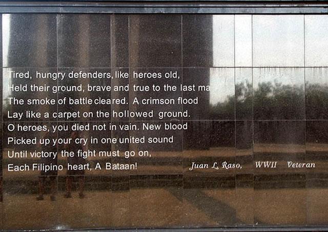 O’Donnell Memorial Monument: Gordon and Litton also requested financial assistance from the other Bataan related organizations: American Defenders of Bataan and Corregidor, the New Mexico Defenders of Bataan and Corregidor, etc. but were turned down. Why? Only slightly over 3,000 Americans from Bataan came home, and due to the PTSD they all suffered from, due to their time in captivity, most of them decided to keep a very low profile, "fearing they would be labeled as kooks or interned in an asylum." (Baldassarre Personal Communication June 26, 2008). With defeat in the forefront and rescue in the background it is not surprising that American veterans of the Philippine engagements are better respected in the Philippines than in the U.S. In the Philippines, April 9 is a National Holiday, "Araw ng Kagitingan" (The Day of Valor). While in the Philippines, every year on April 9, the Philippine President goes up to Mt. Samat, and gives a speech to the Filipino veterans and foreign dignitaries. |