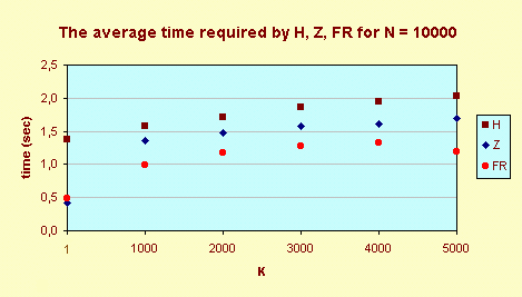 The graph Average time required H, Z, FR shows, that Z is faster than FR only for K = 1. I repeated a few times the measuring and always the finding of the median was faster than the finding of the K-th element, for K = 3000 or 4000.