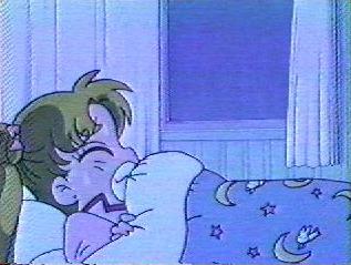 | Serena was having a nightmare. A huge monster was chasing her, but then Tuxedo Mask appeared and saved her. He said that he would always be with her. Serena was holding on to him and had hearts in her eyes. | Serena was woken by someone shouting in terror. She went into Sammy's room and saw that Luna was there. Serena remembered that Sammy was afraid of cats so she teased Sammy. Sammy was saved when their mother called them down for breakfast. | At breakfast, Serena showed Luna to her parents and asked if it was okay to keep her. Sammy was against it and they started arguing. Their parents just smiled and told them to decide it amongst themselves. Serena and Sammy sighed in resignation. |