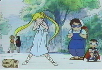 her and Amy and Raye had left her behind! [Notice the boy is wearing a Tuxedo Mask costume.] |