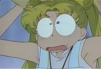 girls trudged through a dark forest. "Are we there yet?" moaned Serena, "We must be lost." "Only because you insisted it was this way," accused Raye. "It's 'cause you didn't check beforehand!" retorted Serena. |