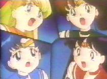 | Endymion continues to explain that when their defenses mysteriously failed, the Dark Moon suddenly appeared and began their attack. Their only hope were the Sailor Scouts of the future who joined their powers to create a shield around the Palace. These are the Sailor Scouts future selves. |