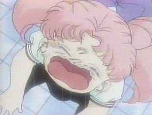 | Rini was walking with her parents, Neo-Queen Serenity and King Endymion, on a rainy day. She spotted a frog and ran towards it. Neo-Queen Serenity called out to her not to run or she would fall... | Rini slipped from running on the wet ground and fell. She started crying. |