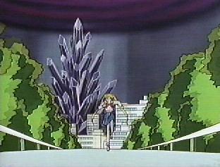 | Meanwhile, on Nemesis, Wiseman appeared before Prince Dimando and told him that all was going well. Dimando however, was furious over the death of his brother Safiel. Wiseman showed him an image of the huge Dark Crystal and of Black Lady surrounded by powerful dark energy. He said the time for their revenge was at hand. Dimando said Wiseman was trying to trick him into forgetting about Safiel. A flicker of light illuminated the Wiseman's darkened hood, revealing a white skull. | Wiseman said that Safiel's death was a minor event compared to their glorious plan. He asked Dimando to remember why their clan was banished to the cold and dark planet of Nemesis. Dimando agreed that revenge was important. He told Wiseman to continue the plan, but warned that he had not been forgiven. Dimando turned and left. Wiseman said to himself that Dimando could do whatever he wanted...if he was still alive. | The Scouts had gathered beside the black crystal. Luna was worried about Tuxedo Mask who was still inside the crystal. Artemis said that he and Luna would go into the energy field and reconnoitre. The two cats tried to leap into the energy surrounding the crystal but were thrown back by a dark energy force field. Serena became angry. Moon Crystal.... |