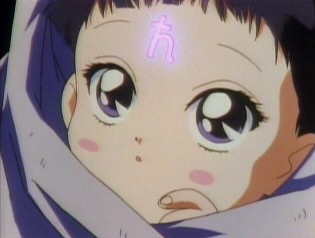 the symbol of Saturn appeared on her forehead! The purplish light of