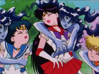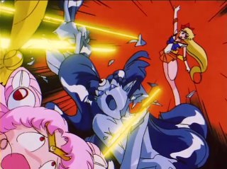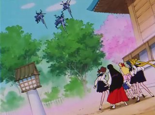 "Mercury Crystal Power, Make-Up!" "Mars Crystal Power, Make-Up!" "Jupiter Crystal Power, Make-Up!" "Venus Crystal Power, Make-Up!" "In the Name of the Moon, we'll punish you!" |