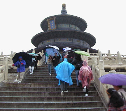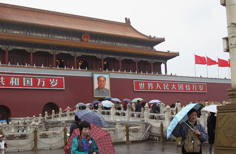Day 3: 6:30am Breakfast. Pouring rain. Visit Tianamen Square, Forbidden City, Pearl Factory and Temple of Heaven. Lunch. Visit Summer Palace and shopped at a Friendship store. Dinner. Acrobatic show, which we (me, Tina, Tammy and Bonny) skipped.