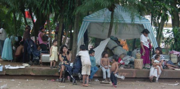 経済困窮者が急増しているという話で、街の中心にある公園にもテント生活をしている人が居ました。