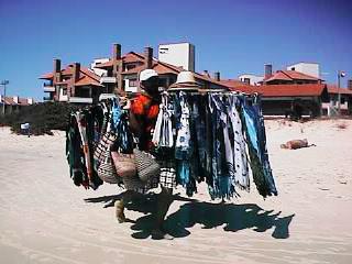 浜辺を行き来するのは観光客ばかりではありません。物売りのおじさん達が頻繁に行き来しています。売っているのはまちまちですが、写真のようなムームーのような衣類や帽子など売っています。大体500円程度(服も帽子も)と非常に安いこともあり、結構商売になっているようです。この他にはアイスクリームとか「エビの串焼き」等の軽食も売りに来ます。