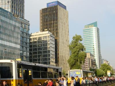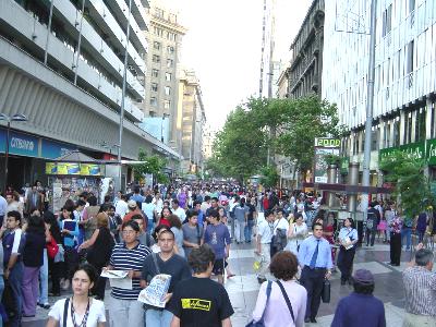 サンティアゴの中心部(セントロ)はかなり広い地域が商業地域になっており、各種商店、ショッピングセンターが軒を連ねています。チリ経済の中心として銀行等も多く、いつも多くの人で賑わっています。