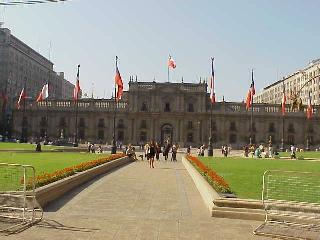 セントロの中心に在るのがモネダ宮殿、宮殿の前は大きな広場・公園となっています。堂々たる建物で何時も多くの観光客で賑わっています。