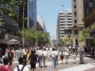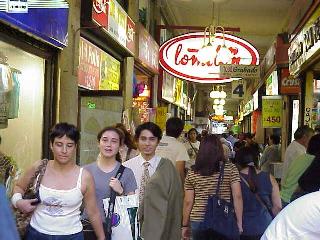 昼時になると中心部には沢山レストランがあり、多くの人で混雑します。中でも人が多いのは食堂街で、狭い道の両側には庶民的な価格の軽食堂が並んでいます。ハンバーガー、ホット・ドックなどをほうばる人の姿が見られます。