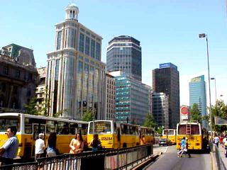 メインストリートには近代的な高層ビルが立ち並び、ビジネスマンが忙しそうにしています。地下には地下鉄一号線、地上にはバスがひしめいています。
