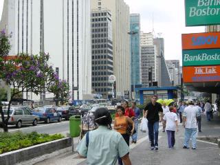 サンパウロのビジネス街としては何と言っても「パウリスタ通り」が有名で大きなビルが立ち並ぶ様は壮観です、銀行等が並び活気に満ちている通りです。総領事館を始め、日本の進出企業もここに支店を構えている企業が多いようで、住友銀行、東京三菱銀行等は単独で大きなビルを持っています。日本企業はサンパウロを南米の拠点としている事が多いのですが、経済の中心であるという理由ばかりでは無く日系人が多く、日本語が出来るスタッフが多うので言葉の面で有利である点があるようです。オフィスの中は日本語で用が足り、便利な反面、逆に現地のポルトガル語の習得に支障が生じるケースも中には中にはあるように聞いています。