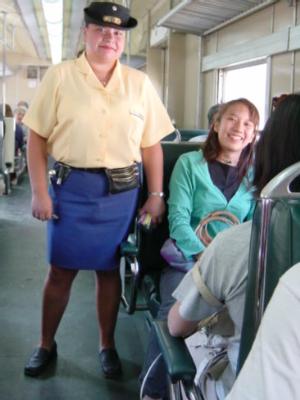 (写真:車掌さんは女性が多いようです。)
