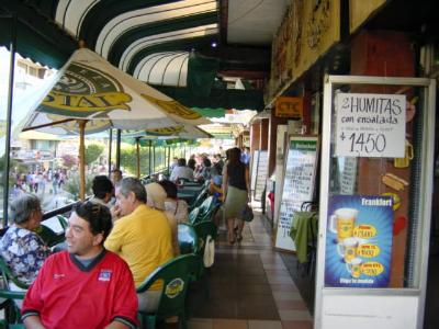 歩き疲れて一休み、街のとあるありふれた一軒の居酒屋に立ち寄りました。昼は軽食も出しているようですが、お昼時のこの時間でも全く人気は無く、ご主人が一人手持ち無沙汰にしていました。冷たいビールで疲れを癒し、座っていると何か100年くらい前にタイムスリップしたような錯覚を感じましたね、時間がゆっくりと経過しているような。このような何気ないどこにでもありふれた場所に南米の良さというのがあるようなそんな気がしますが如何でしょうか?南米を廻る時にはゆっくりのんびりと、余りきっちりとした計画を立てずに旅行するのが良いのかも知れませんね。なお、このご主人の横にワインのような飲み物が大きな瓶に入っているのに気がつき、これは何か尋ねたら説明をしてくれて一杯振舞ってくれました。薬草の香りがするさっぱりとした飲み物でした。