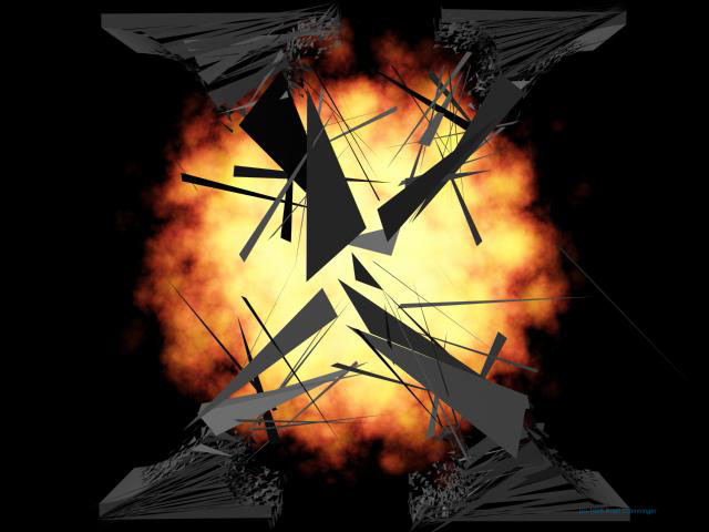"Even though I know that this is not a modified image, it is an original image so I posted it anyways. It is a 3D Exploding 'X' Logo from the anime movie 'X' (cool movie) with a large fireball behind it. This image was made with 3D Studio Max and a couple hours spare time."