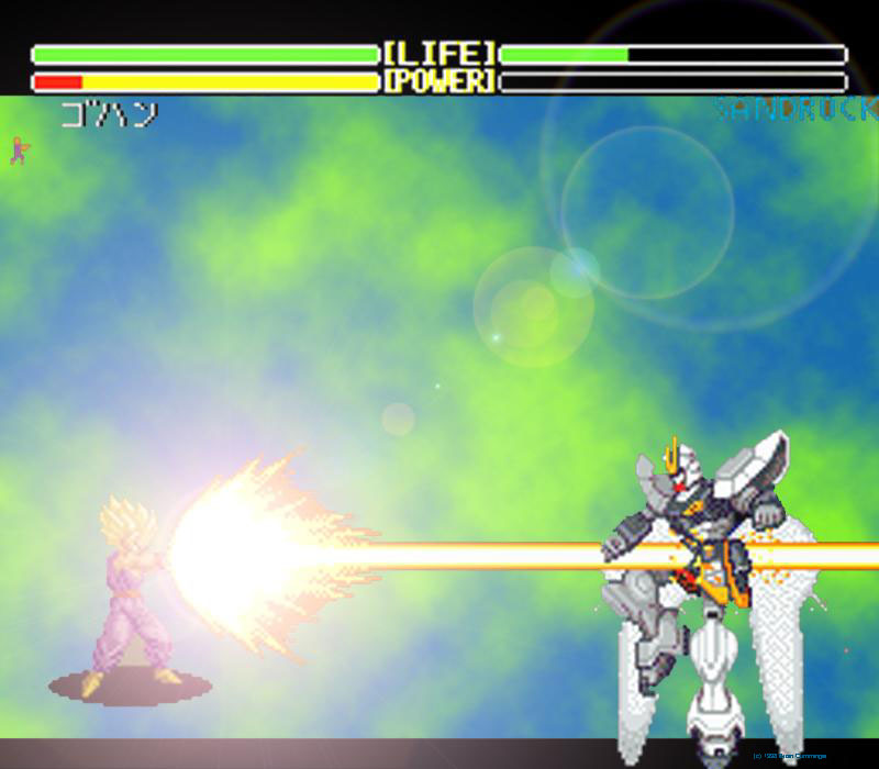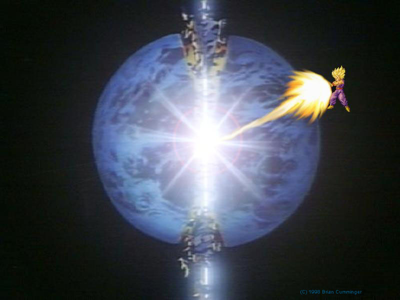 "This was definitly one of the earies images to do, but still looks good. The earth in the background is a scene from 'X' and the Gohan is from the snes game 'Dragon Ball Z-Super Futoden 2' (the best one). As you can see, the fireball was greatly enhanced."