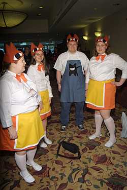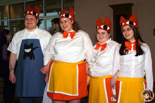 Pic 2: Azumanga stuffed animal kissaten cosplay! (From left: Stephen, Kristen, Tara, and me)