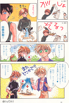 This particular book isn't a doujinshi itself; rather, it's the manga adaptation of the Gundam Wing radio play. Still, in the back there are some little stories and pictures that I deemed worthy of putting on this page ^_^
