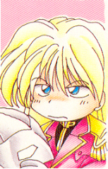 Here is a cool scan of Heero with the moon and the words "GUNDAM W" in the background: Heero and the moon