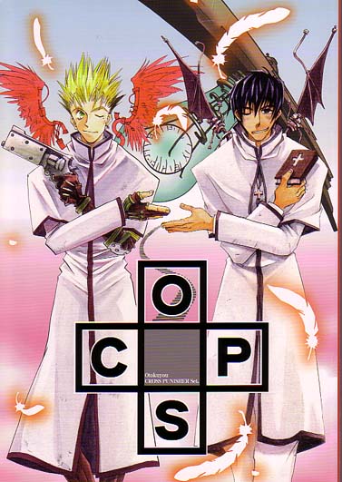 Front cover of Cops: Cool picture of Vash and Nick with wings, Vash with red angel wings and Nicky with bat wings.