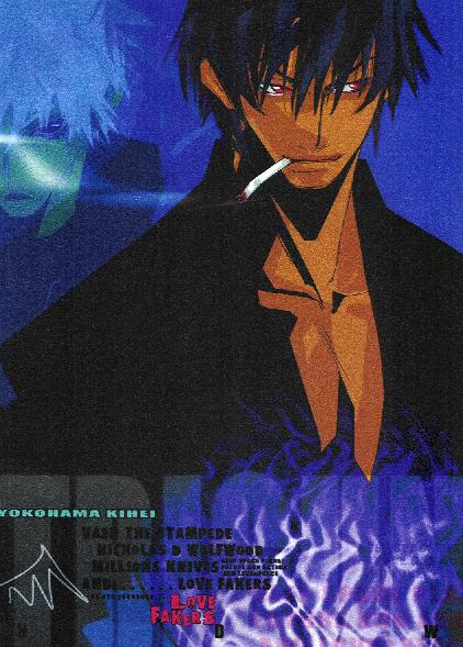 Back cover of Love Fakers: Wolfwood done in the same style as the above Vash pic.
