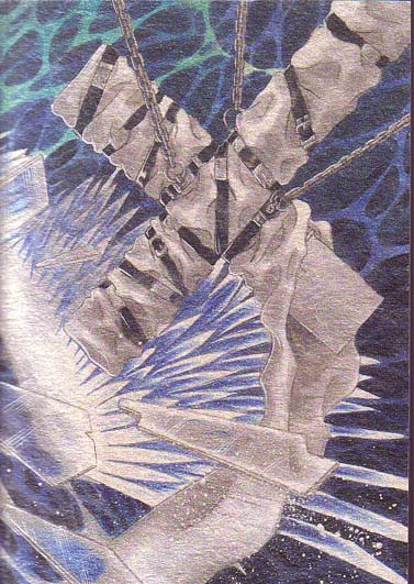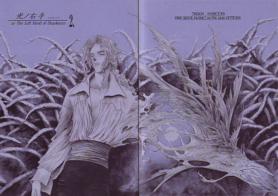 Front and back cover of Right Hand of Light--or Left Hand of Darkness: Really neat picture of Knives in old kind of European clothes with his Angel Arm spreading out to the back cover....very unusual looking, but incredibly beautiful.