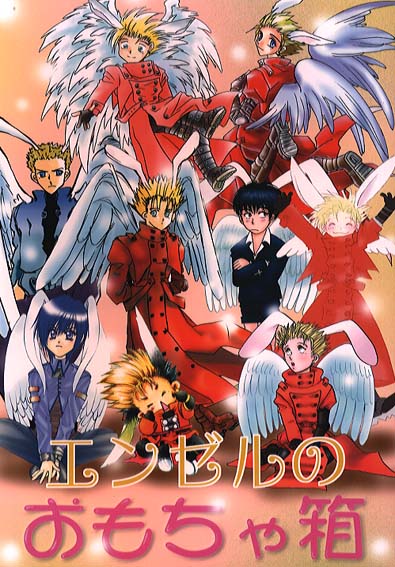 Front cover of Angel's Toy: Multiple angelic Vashs and angelic Wolfwood, Knives, and Meryl (all with bunny ears ^_^).