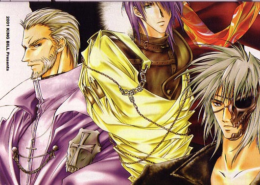 Here's my page of pretty doujinshi pictures! So far, all I have up are pictures stolen from eBay auctions. They're either from auctions I bid on but didn't win, or ones I didn't even want in the first place, but liked the cover pictures of ^_^ Since these are mostly pictures from the covers and backs of doujinshi, there's nothing really graphic, but there may be implied yaoi or other relationships, so be warned if that ain't your thing. Away we go!