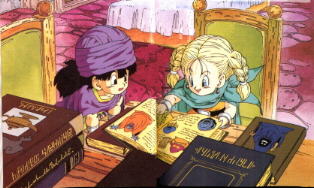Hello and welcome to my Dragon Quest 5 shrine. This is about IMO, the greatest RPG that ever made and that never hit the US. (What a terrible injustice!) First, a little bit about Dragon Quest: Dragon Quest was first released for the Famicom in Japan, made by Enix. It was a huge success. It was eventally ported to the US Nintendo Entertainment System (NES) as Dragon Warrior. It even spawned great sequels as well. The first 3 was a trilogy series known as the "Roto Densetsu", or Legends Of Roto (we all know this at the Legends of Erdrick). The next 3 were a totally different trilogy, know as the "Tenku" series.(Tenku means Heaven) The 1st of the Tenku series (Dragon Quest 4) was released in the US as Dragon Warrior 4, and it was also the last Dragon Warrior game to ever hit the US, thus the whole Tenku trilogy never made it to the US, because of Enix of America shutting down before Dragon Quest 5 or 6 ever made the US shores. If they did, they'd be known as Dragon Warrior 5 & 6. Notice the pictures on this page look rather familiar? All of the character designs of Dragon Quest & Dragon Warrior games are all done by Akira Toriyama. He is more famous with his anime series, Dragon Ball Z.