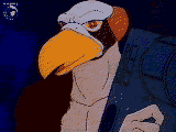 | This is Vulturman, a true bird-brain! He's the technical genius among all of the Mutants. He is the one to designed the Skycutter and many other machines used by the mutants. When another mutant, Rataro, briefly controled all of Third Earth's mutants, he favored him, for sucked up to him a lot. Geez...he got a brain, but no spine?!?! Pathetic! |