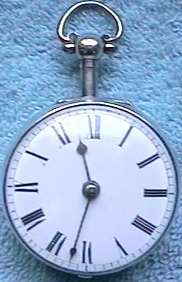 This is a fantastic English sterling silver pair-cased verge fusee in excellent running condition! The hallmarks date it to 1776, making this officially my oldest pocket watch. The watch itself measures about 40 mm in diameter, whereas the outer case measures about 46 mm in diameter. The watch has a gorgeous hand pierced balanced cock, squared "Egyptian" pillars, and a nice hand pierced ornament right near the fusee. The watch has the older "Tompion" style regulator which requires a key to operate. The movement is signed "Jos^h [Joseph] Brookes, London 5637". The dial and the hands are probably NOT original to the watch and may date from as late as 1830-1840.