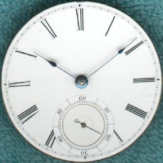The watch movement has a cut, compensated balance which I believe is probably a replacement, since all the early Walthams I have seen had flat steel balances. Compensated balances did exist back then, and were often found on British watches, but I do not think Waltham used them during this time period. The dial, which is completely unmarked, may also be a replacement, since I believe it should be marked "Boston Watch Co."