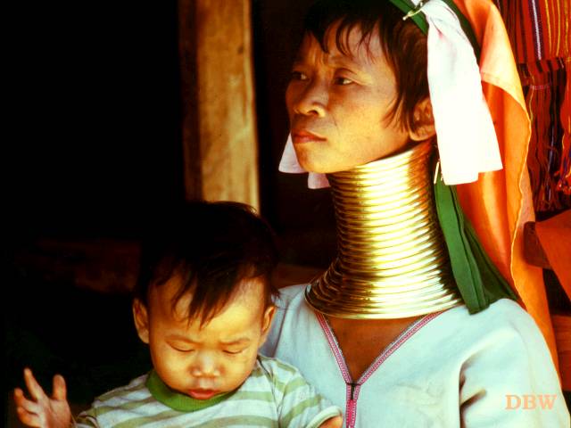 The Padaung People is actually a sub-group of the Karens. Thus they are also known as the Karen Padaung, although they call themselves, “Ka-Kaung”. They live in the remote hills in the Kayah and Shan State borderlands (refer to the map of burma) and speak Karenic language. They are originated from what is called, “Kang Yan”, which according to some researchers, has extint hundreds of years ago.