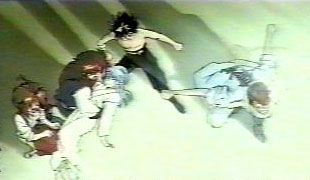 | Saved by Kurama! Whew! ...and to think Kurama doesn't usually let anyone touch his hair. ^.~ |